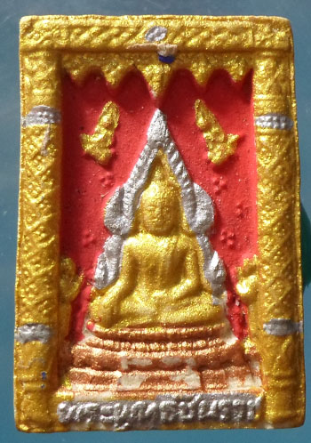 พระผงลงยาพระพุทธชินราช หลังพระพุทธโสธร ไม่ทราบที่