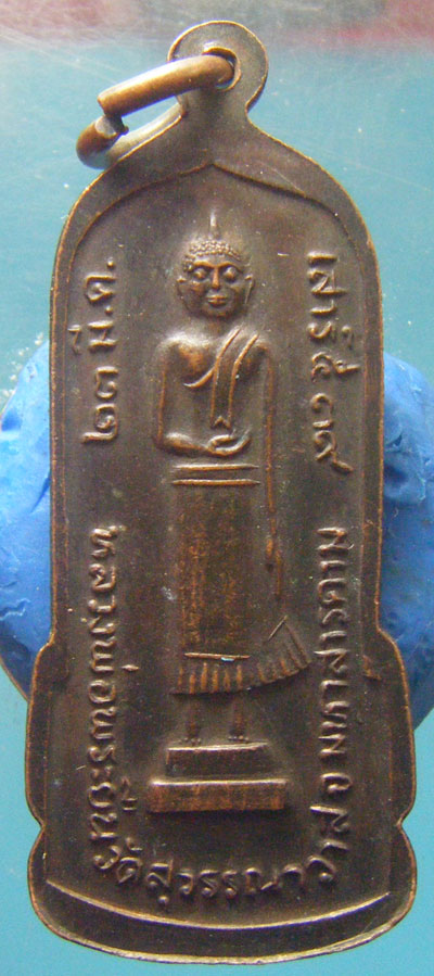 เหรียญหลวงพ่อพระยืน วัดพุทธมงคล หลัง หลวงพ่อพระยืน วัดสุวรรณาวาส จ.มหา
