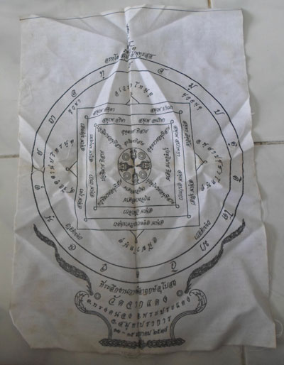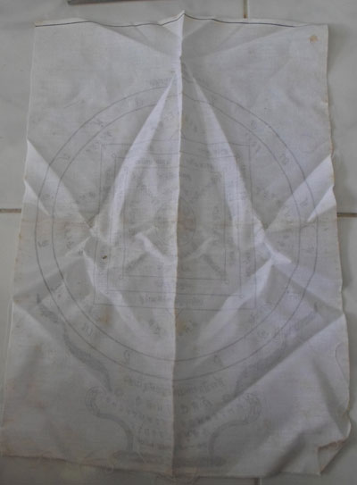 ผ้ายันต์ที่ระลึกงานวางศิลาฤกษ์อุโบสถวัดจากแดง สมุทรปราการ 2538