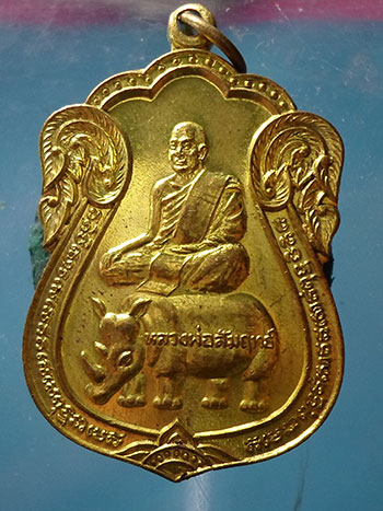 เหรียญหลวงพ่อสัมฤทธ์ รุ่นสร้างมณฑป วัดถ้ำแฝด จ.กาญจนบุรี พ.ศ.2539