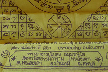 ผ้ายันต์พระอาจารย์แปลง วัดพานิชธรรมการาม จ.ลพบุรี