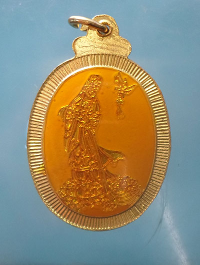 เหรียญรูปไข่ลงยาพระสังฆจายหลังเจ้าแม่กวนอิม จ. ลพบุรี