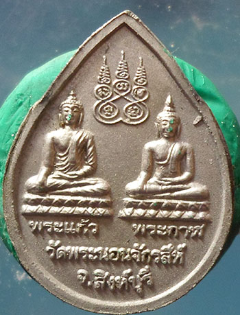 เหรียญหลวงพ่อพระนอนจักรสีห์ หลังพระแก่ว พระกาฬ วัดพระนอนจักรสีห์ จ.สิงห์บุรี