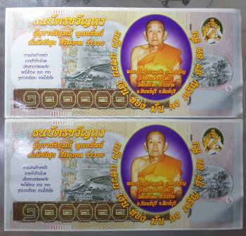ธนบัตรขวัญถุง หลวงพ่อบุญส่ง วัดกระโจม จ.สิงห์บุรี (2ใบ)
