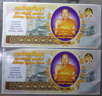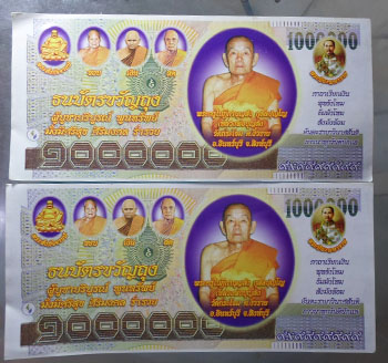 ธนบัตรขวัญถุง หลวงพ่อบุญส่ง วัดกระโจม จ.สิงห์บุรี (2ใบ)