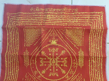 ผ้ายันต์มหาลาภครอบจักรวาล วัดถ้ำเขาชะอางค์โล จ.ชลบุรี