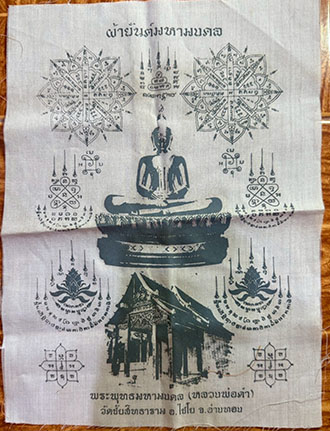 ผ้ายันต์มหามงคล หลวงพ่อดำ วัดชัยสิทธาราม จังหวัดอ่างทอง