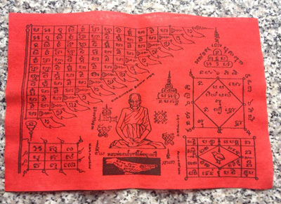 ผ้ายันต์หลวงพ่อคนถ้ำเขาอีโต้อายุร้อยปี(สีแดง)